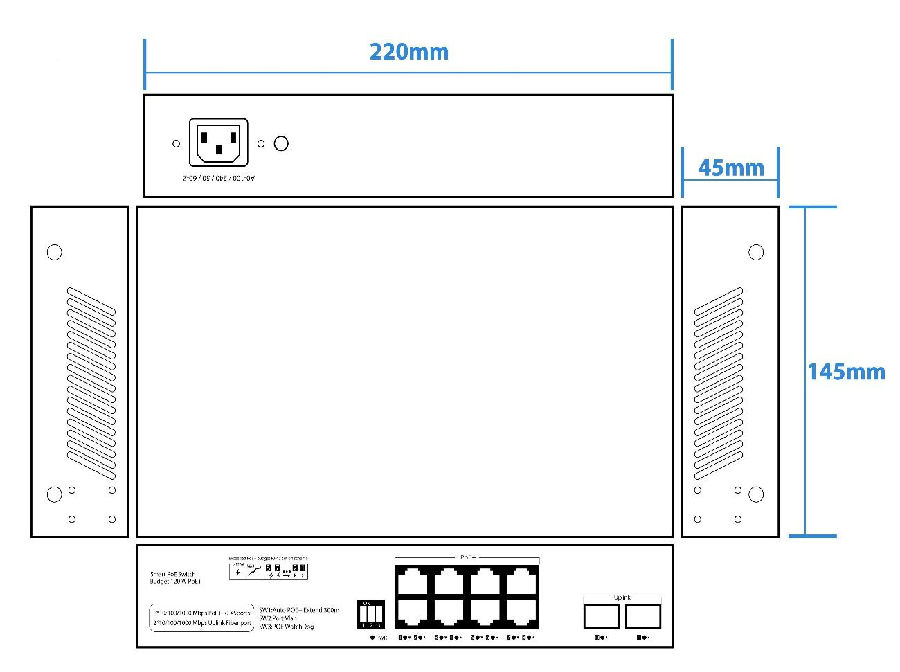 The POE208G-2GS series is an 8 Ports Gigabit unmanaged PoE switch. It has 8*10/100/1000M PoE ports and 2*10/100/1000M uplink SFP ports. Port 1-8 can support IEEE 802.3af/at standard PoE power supply, and single port PoE power reaches 30W. The maximum PoE output power is 120W. As a PoE power supply device, it can automatically detect and recognize the power receiving equipment that meets the standard and supply power through the network cable. It can supply power to POE terminal equipment such as wireless AP, webcam, VoIP, visual intelligent building intercom through network cable,and meet the network environment that needs high-density PoE power supply. It is suitable for hotel,campus, factory dormitory and small and medium-sized enterprises.